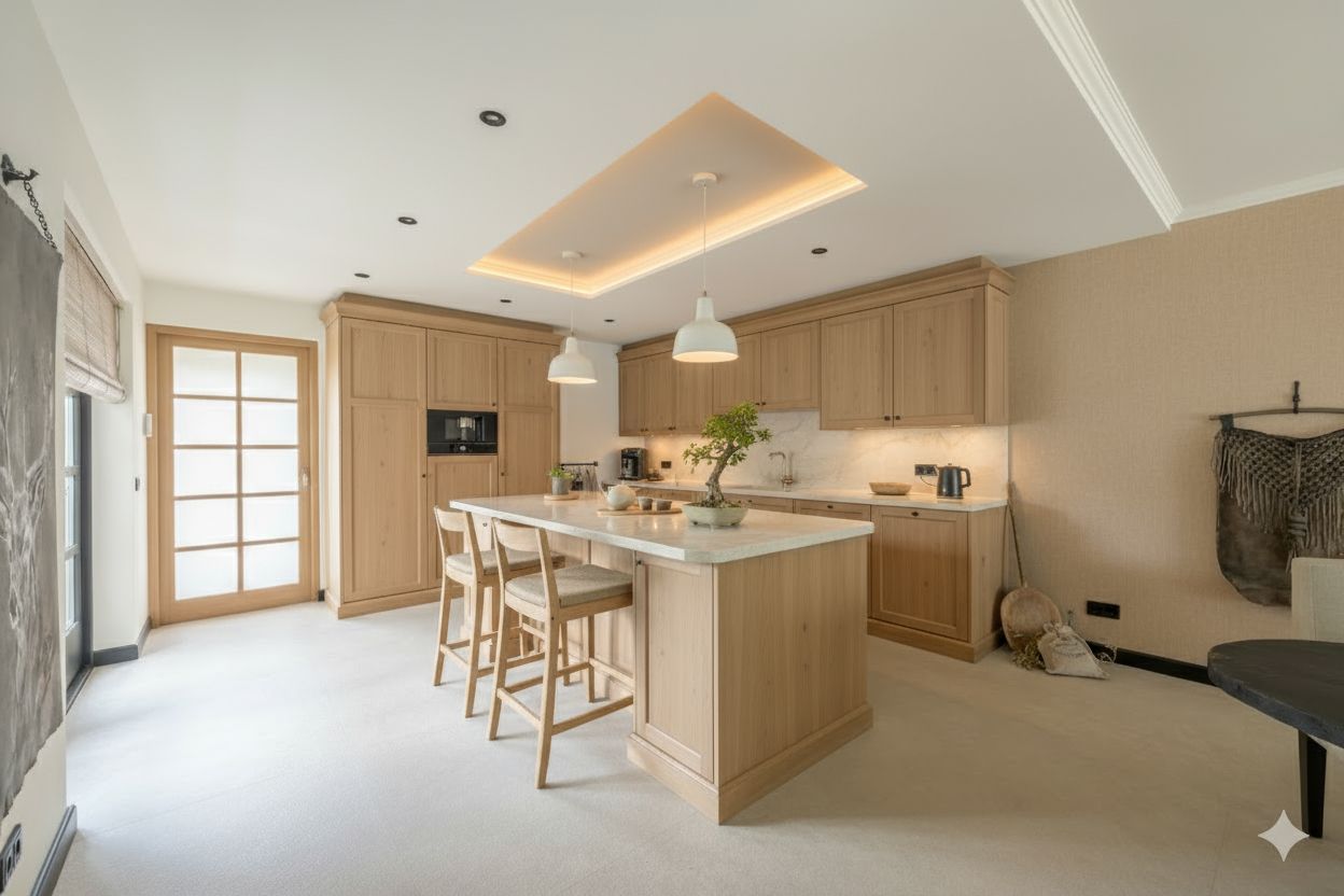 Tot slot, voor de liefhebber van puurheid en sereniteit, is er Japandi: de unieke mix van Scandinavische eenvoud en Japanse minimalistische rust. Denk aan lichte houtsoorten, ingetogen kleuren en natuurlijke lichtinval. Alles in deze keuken straalt balans en evenwicht uit.