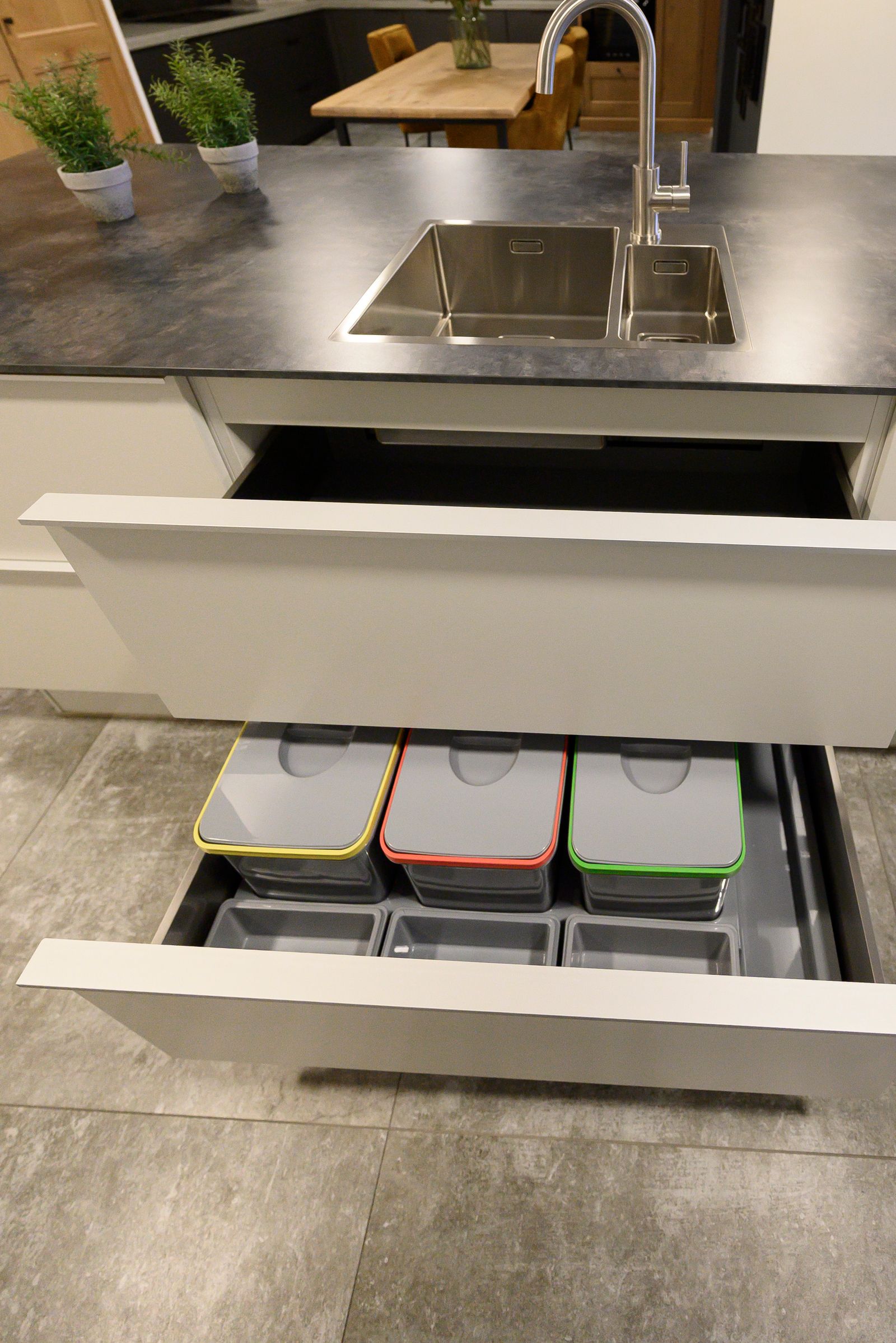 Dankzij de vele lades en binnenlades hou je alles overzichtelijk: kookpotten, voorraad, servies en keukenaccessoires krijgen moeiteloos een eigen plaats.