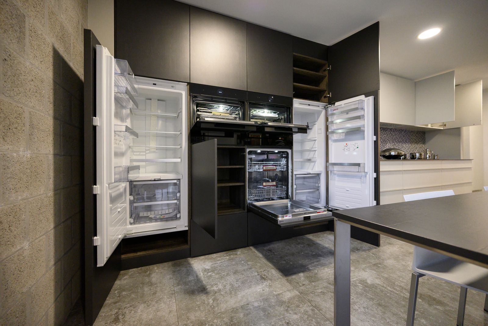 Deze toonzaalkeuken wordt compleet met toestellen aangeboden.